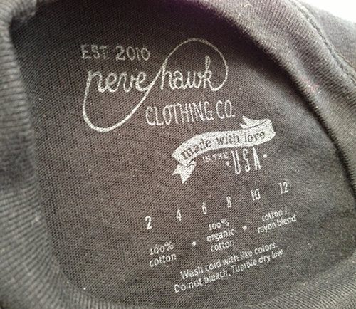 Let's say a first time customer finds your shop, buys a t-shirt, get's it in the mail, and tosses out the packaging and packing slip. What is there left on the product to signify where they purchased this garment from? A few months from now, do you think they will be able to recall? What if a friend, family member, or passerby admire the shirt and wants to know?